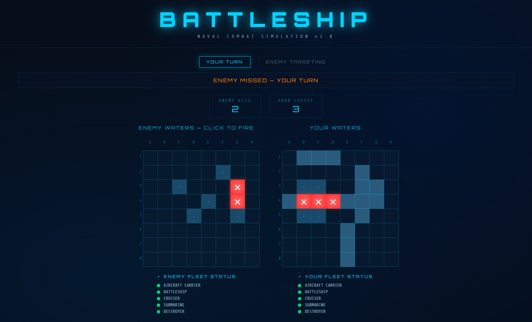 • Click enemy waters to fire — hunt down and sink the entire fleet